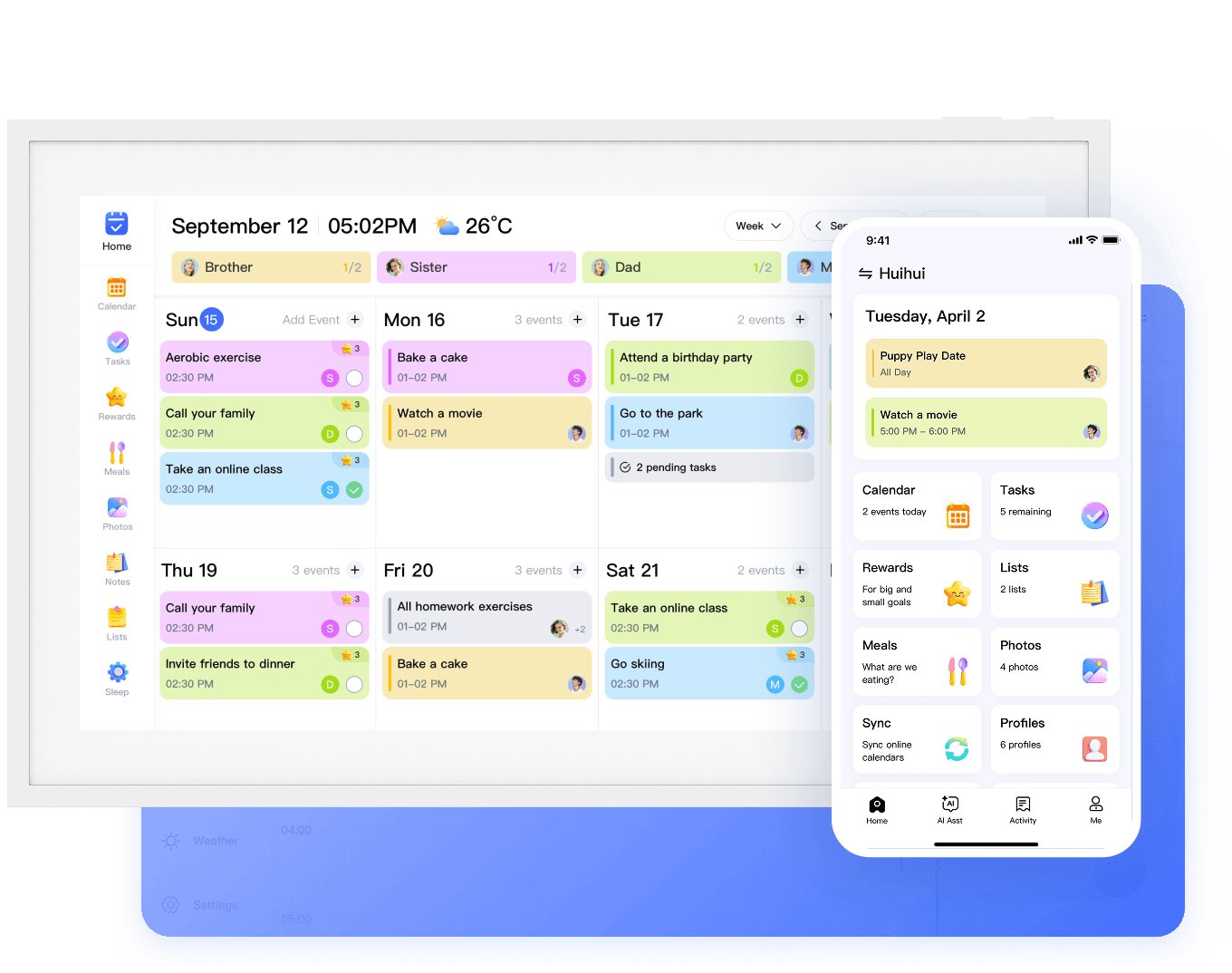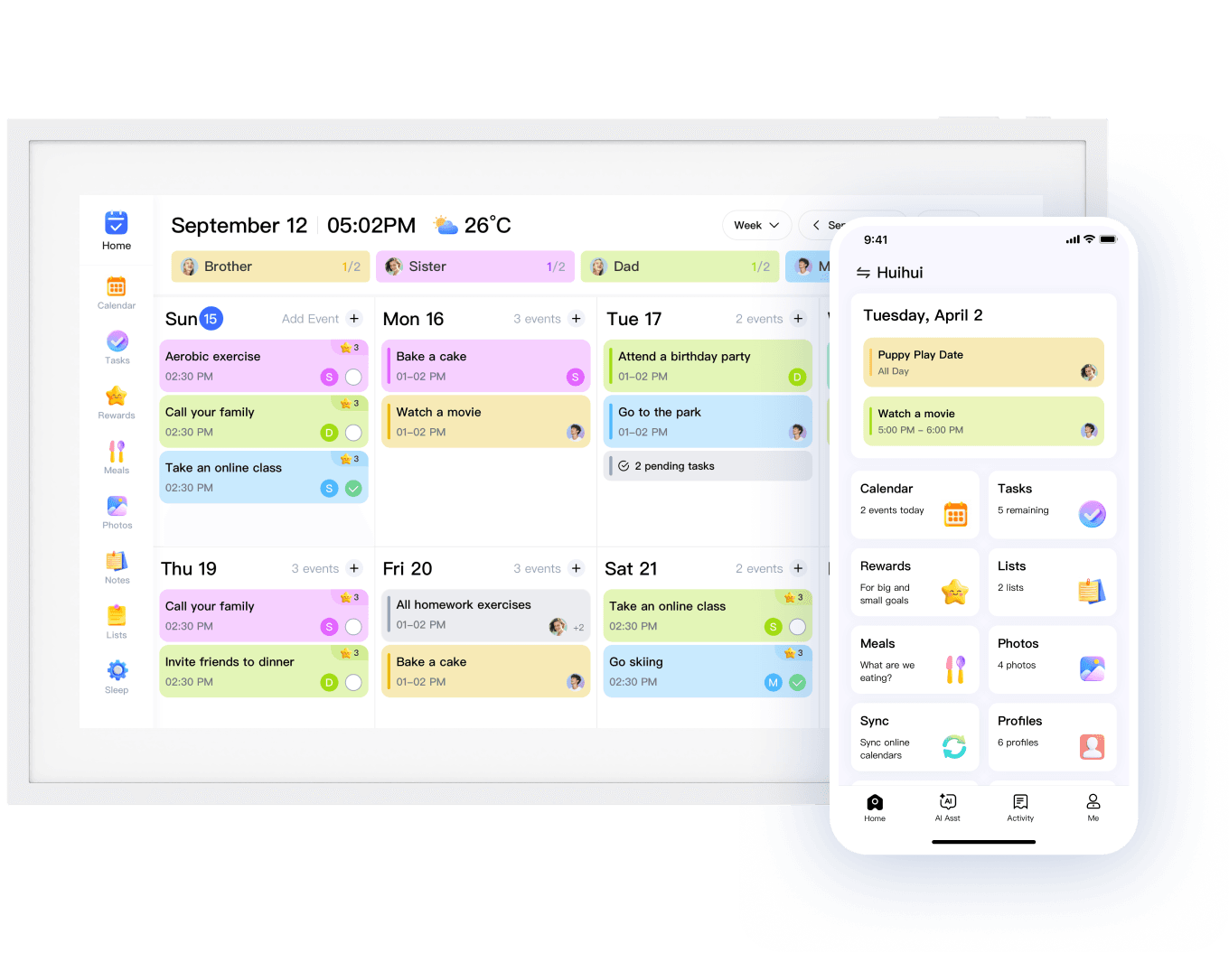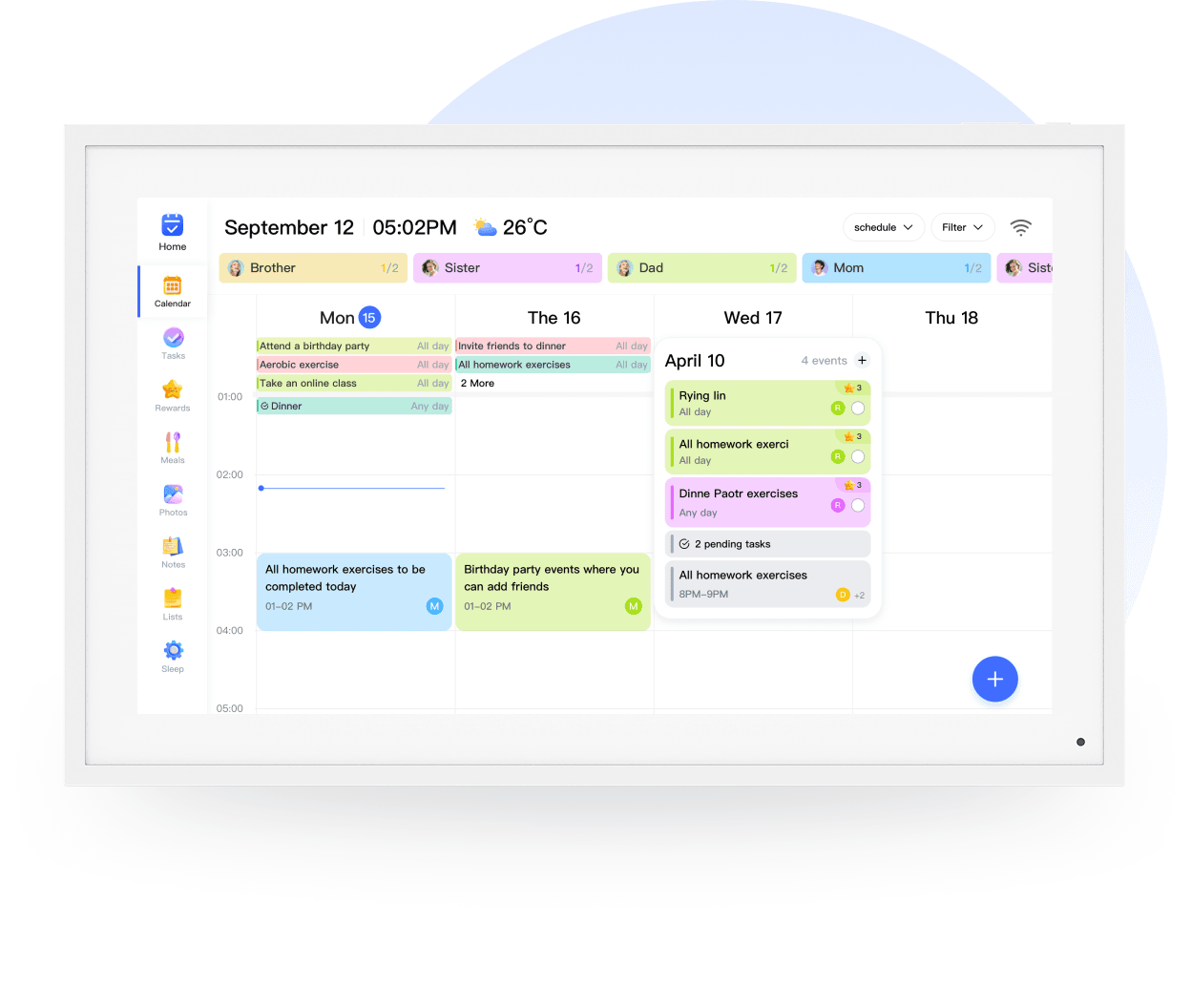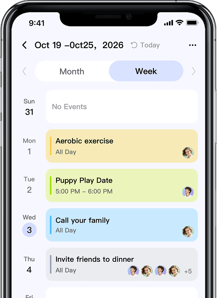 Effortlessly switch between day, week, month, or planning modes to match your family's unique schedule. With this versatile feature, staying organized has never been easier!